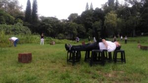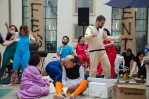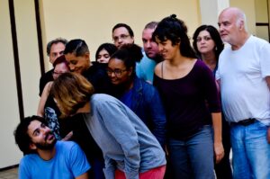Com atuação também fora dos contornos institucionais, o Grupo Aberto tem como horizonte de pesquisa de linguagem a intersecção/composição das artes performativas: – teatro, dança, música e performance – com o cuidado e a “clínica das loucuras”.