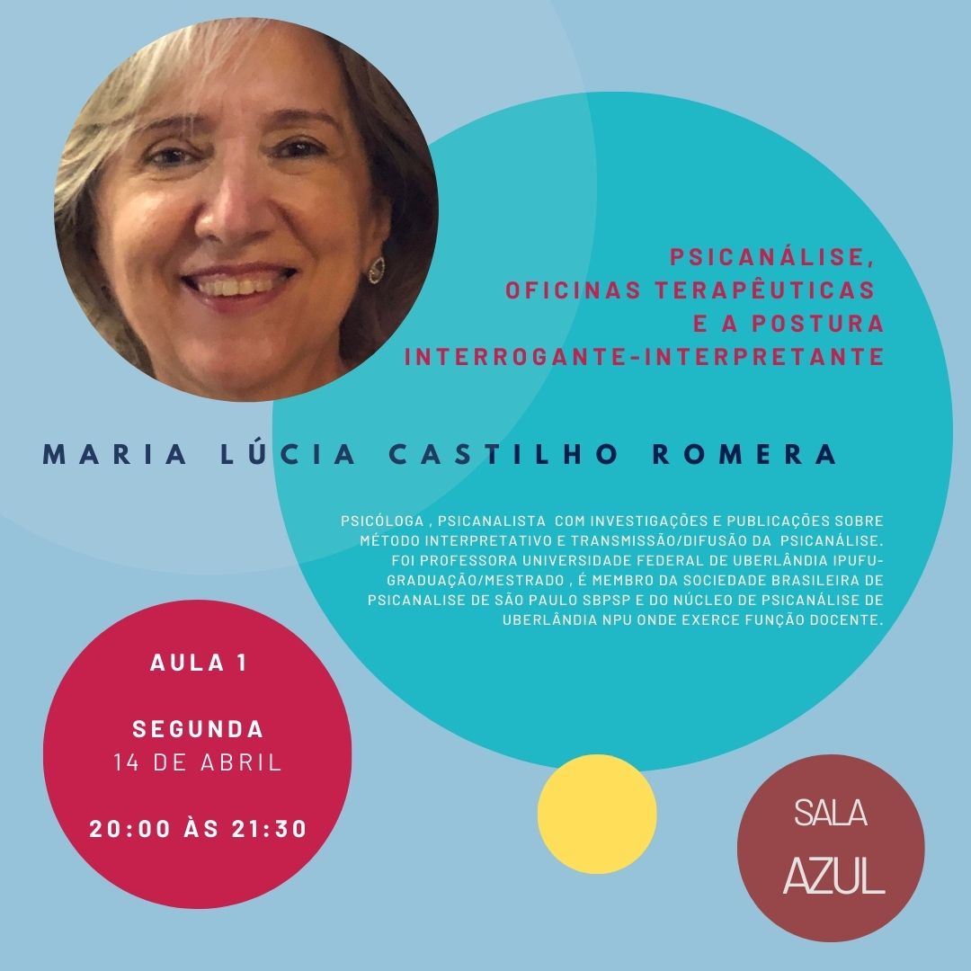 14/04: aula 1 _ Psicanálise, Oficinas terapêuticas e a Postura Interrogante-Interpretante: Maria Lúcia Castilha Romera – Uberlândia/MG.