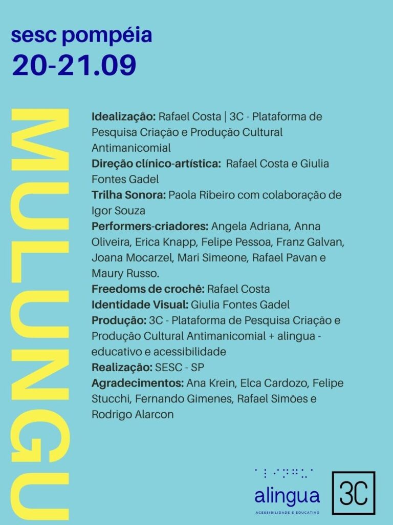 Produção: 3C – Plataforma de Pesquisa Criação e Produção Cultural Antimanicomial + alingua – educativo e acessibilidade